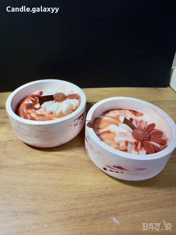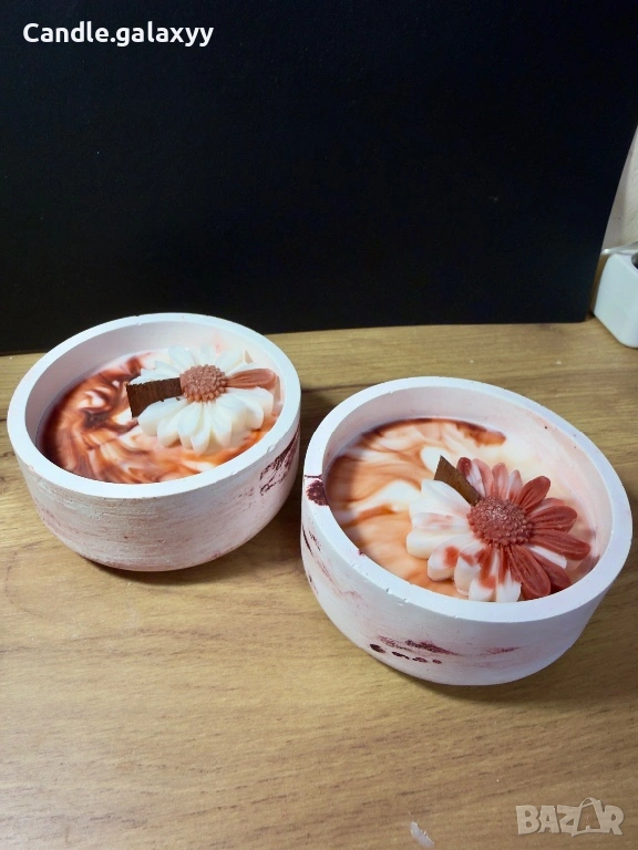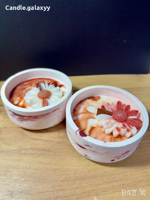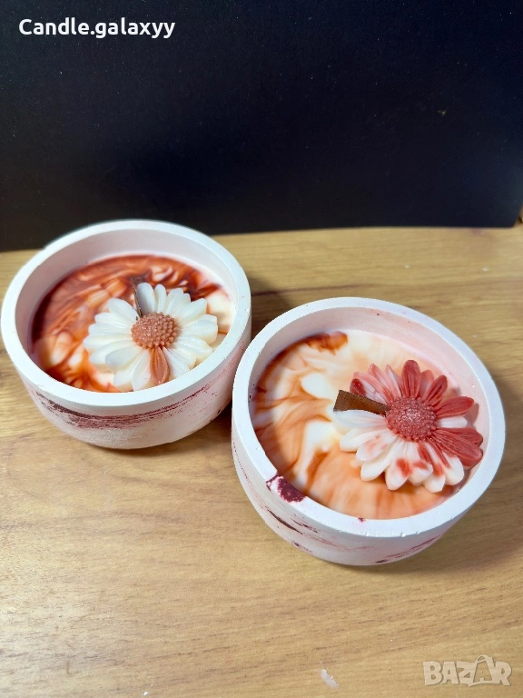 Ръчно изработени соеви свещи в уникална гипсова чаша, създадена изцяло на ръка. Всяка свещ е различна – с нежни мраморни шарки и цвете, което превръща всяко запалване в малък момент на уют.