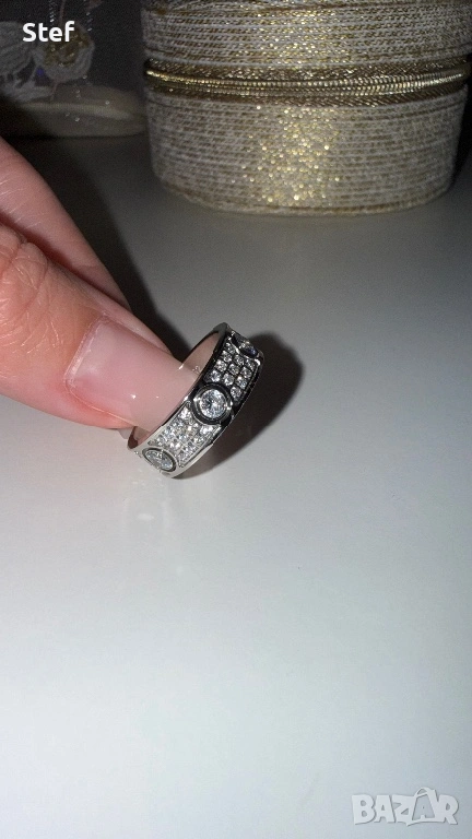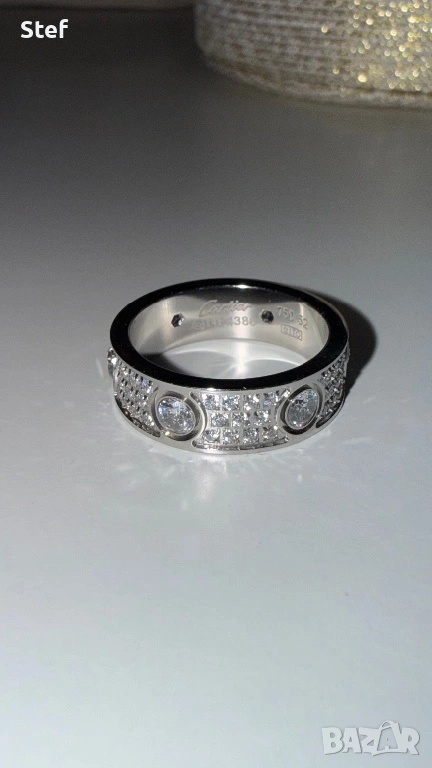 Cartier love пръстен сребърен full diamond, снимка 1 - Пръстени - 53827953 Cartier love пръстен сребърен full diamond, снимка 2 - Пръстени - 53827953 1/2
