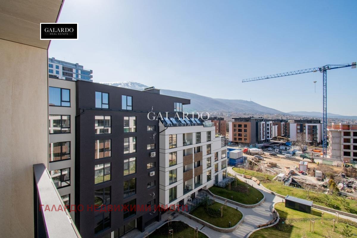 Апартаментът е вътрешен с изложение юг/запад, с панорамна тераса с гледка към Витоша и зелени дворове.