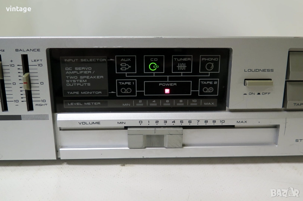 Стерео усилвател, отличен технически, добър външен вид. Корекции: 5 бандов еквалайзер, loudness. Светодиоден индикатор за изходното ниво. Приложените снимки и видео са реални!