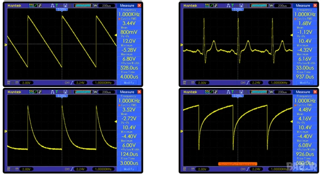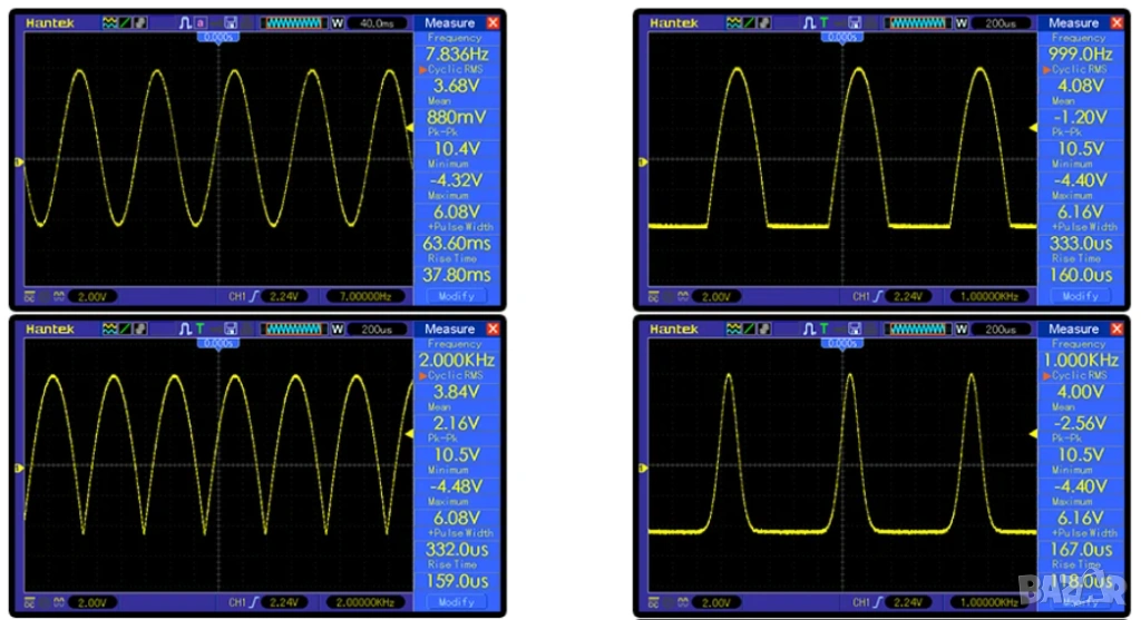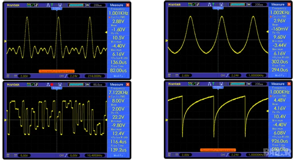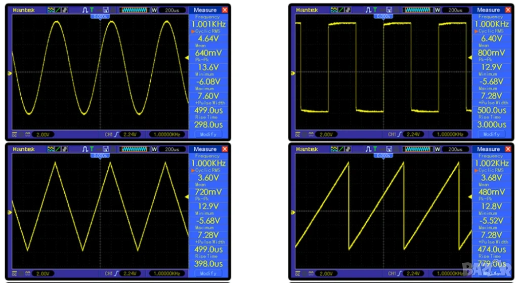4. Frequency range: sine wave 0.01Hz- 500.00kHz (with further increase in frequency, the output amplitude will