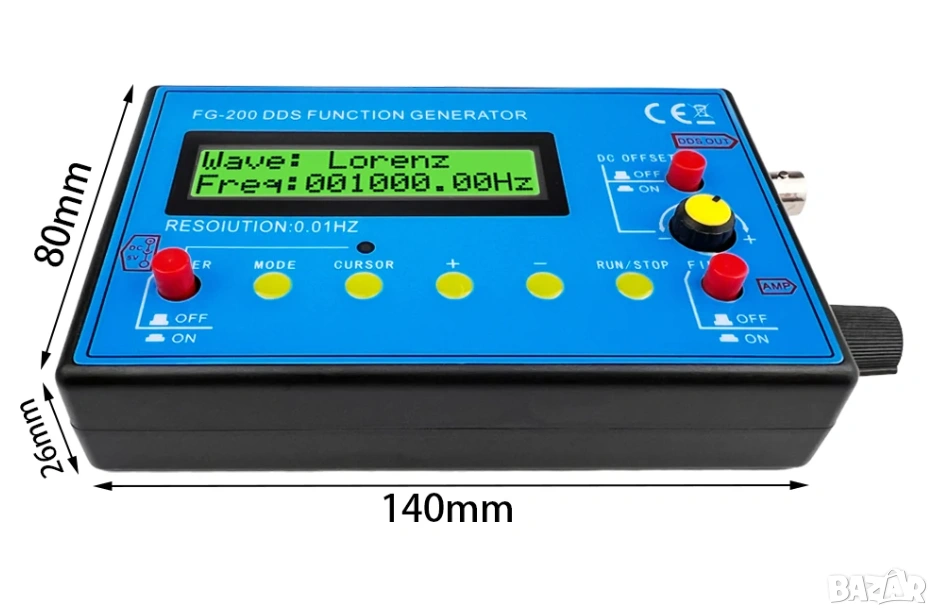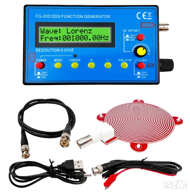 FG-200 Функционален Сигнал Генератор на Сигнали 0.01Hz - 500KHz Честотен Брояч с Антена DDS Функция