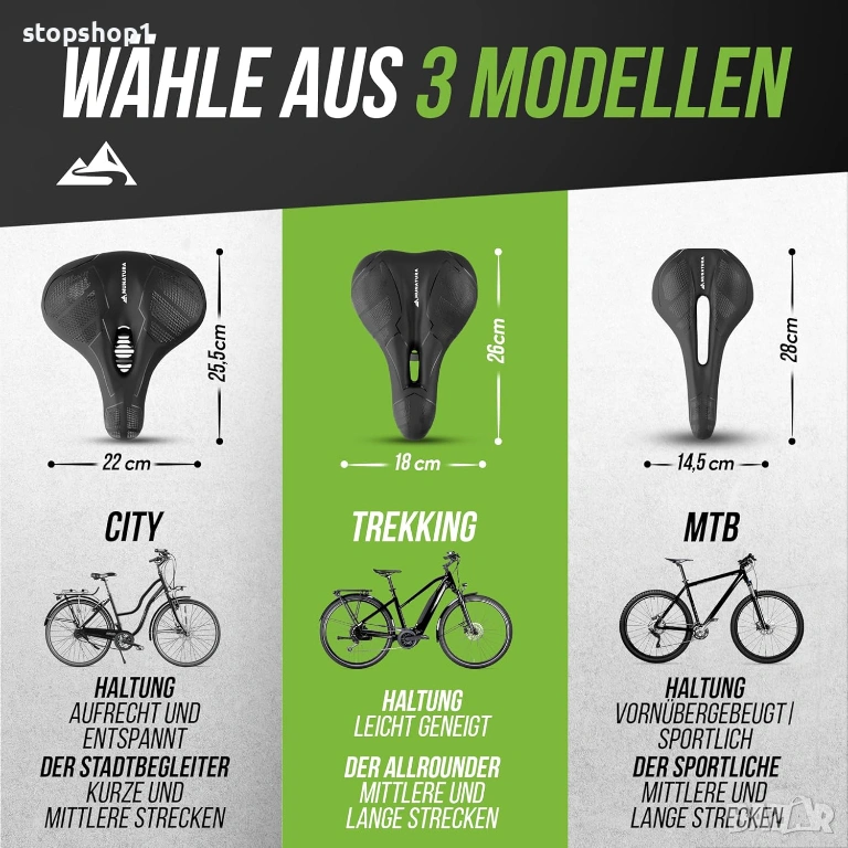 - Подходящи за всяко приключение - Нашите велосипедни седла предлагат комфорт, съобразен с вашите нужди, с три варианта - независимо дали е за град, трекинг или взискателно планинско колоездене. Също така са идеални като седло за велоергометър, седло за шосеен велосипед или седло за планински велосипед.