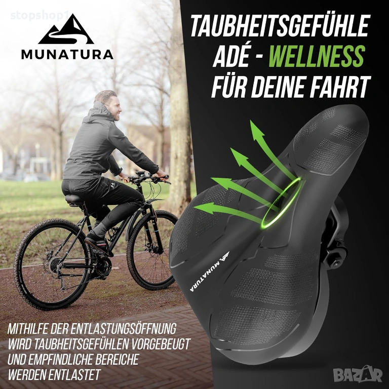 Премиум велосипедна седалка - изключително удобна и ергономична - с мемори пяна и окачване, водоустойчива и амортизираща - перфектна седалка за мъже и жени, електрически велосипеди и градски велосипеди