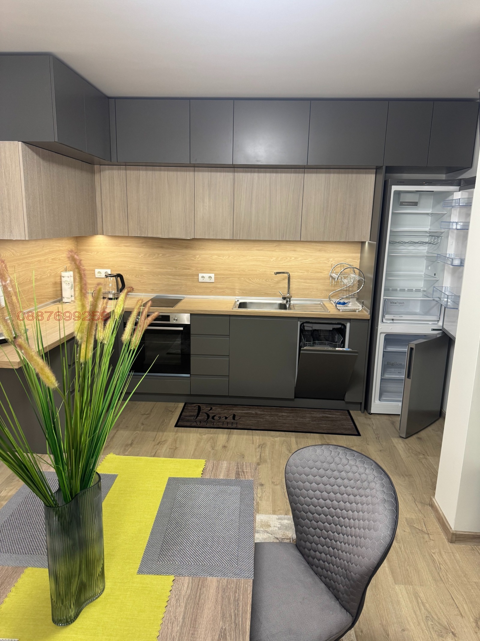 Отдава се под наем НОВ страхотен просторен апартамент -94м2 пл. Ручей директно от частно лице.Жилището е бутиково, много добре обзаведено и съвременно ремонтирано. Разположено е на втори жилищен етаж в нова модерна от най висок клас жилищна сграда на ул.Емине номер 2. Състои се от коридор, огромен хол, в който има отделни обособени кътове: коридор, баня, кухня, трапезария, холна част с мека мебел, отделна спалня тип (en suite), тоест има втора самостоятелна баня, която е свързана директно към спалнята. Жилището разполага с всичко необходимо за незабавно нанасяне без да е необходим допълнителна инвестиция за домакински потреби от ежедневието. Наличие на висок клас електроуреди: голям хладилник, миялна, пералня, вградена готварска печка, електрическа кана, прахосмукачка. Апартаментът е оборудван с високоскоростен Интернет и вътрешна система за умно заключване за сигурност, както и модерна блиндирана врата. Отоплението е локално, както и топлата вода. Жилището се отдава дългосрочно и е с много нисък разход на месец. Предлага се адресна регистрация при изискване, плащането е само по банков път, подписва се двуезичен договор. Наем 890 EUR. При подписване на договор се изисква депозит в размер на два месечни наема и наем за първия месец. Вторият депозит може да се разсрочи. Този апартамент не е подходящ за домашни любимци. Поради благоприятната локация е подходящ за работещи в близките кол центрове, студенти по медицина, младо семейство и други желаещи, които харесват квартал Хиподрума. Огледи само с предварителна уговорка на тел.0887699259 или съобщение на вайбър, whats app. Този апартамент се предлага директно от собственик.