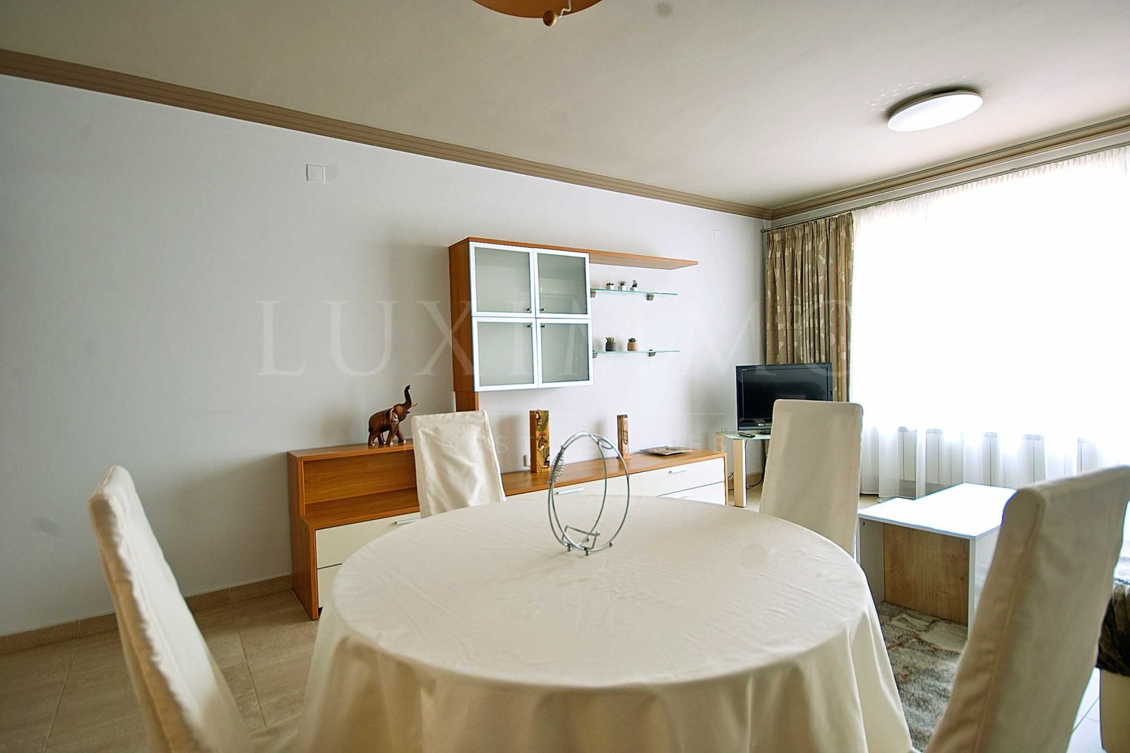 Представяме на вашето внимание обзаведен тристаен апартамент с просторна тераса, разположен на тиха улица зад МОЛ Сердика. Жилището е разположено на първи етаж над магазини и се състои от дневна с трапезрана част и кухненски бокс, две спални, баня с тоалетна , отделна тоалетна и обширна тераса от 50м2. Апартаменът е напълно обзаведен, с изключение на втората спалня, която може да бъде оборудвана по желание на клиента. Отоплението е на ТЕЦ , а в допълнение има и климатици. Апартаментът разполага със СОТ и външни електрически ролетни щори. Удобно местоположение на тиха улица зад МОЛ Сердика, на метри от улица Оборище и в близост до Докторска градина.