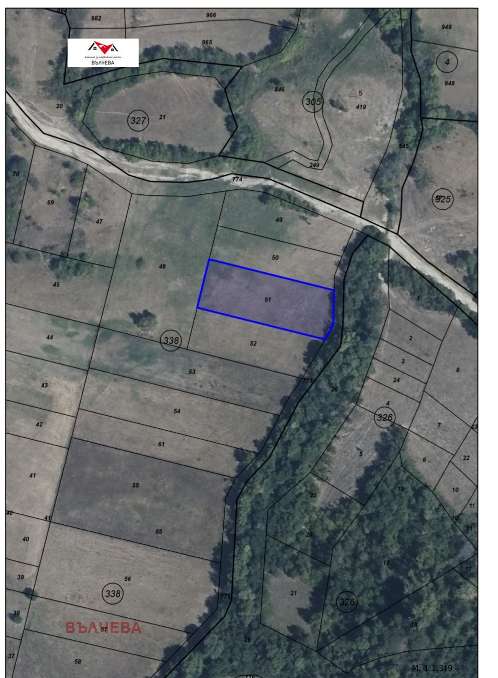 Агенция за недвижими имоти 'Вълчева' предлага земеделска земя, находяща се в гр. Карлово, обл. Пловдив с квадратура от 1651 кв.м.