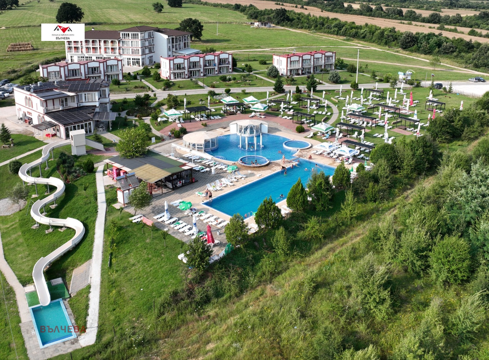 Агения за недвижими имоти 'ВЪЛЧЕВА' Ви представя ДИРЕКТНО ОТ ИНВЕСТИТОРА!!! ВЪЗМОЖНОСТ да притежавате самостоятелна къща с двор и паркомясто във вилното селище на комплекс Аква Терми, който разполага с горещата минералната вода от извора на Красновски бани, 6 външни басейни, 60м водна пързалка,солна стая и вътрешен зимен басейн със сауна и парна баня, както и целогодишно работещ ресторант.