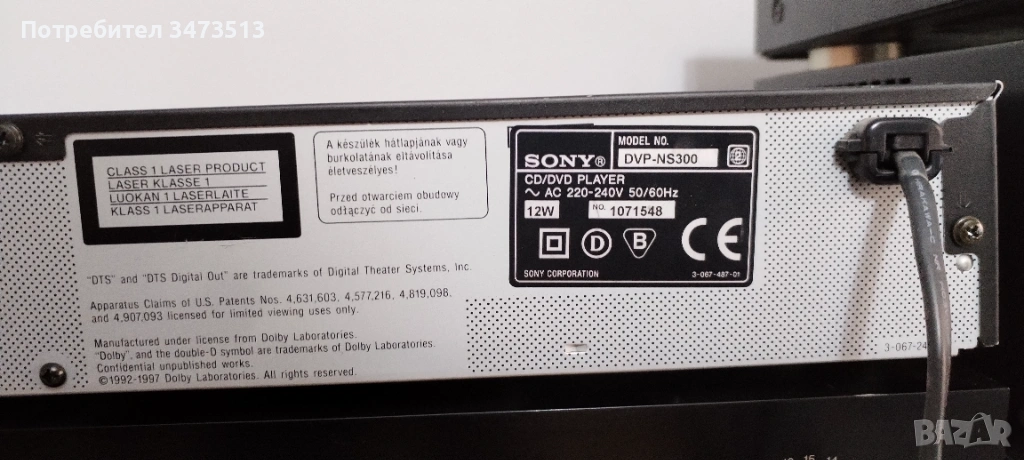 CD/DVD SONY DVP-NS300 → Обява 53828952