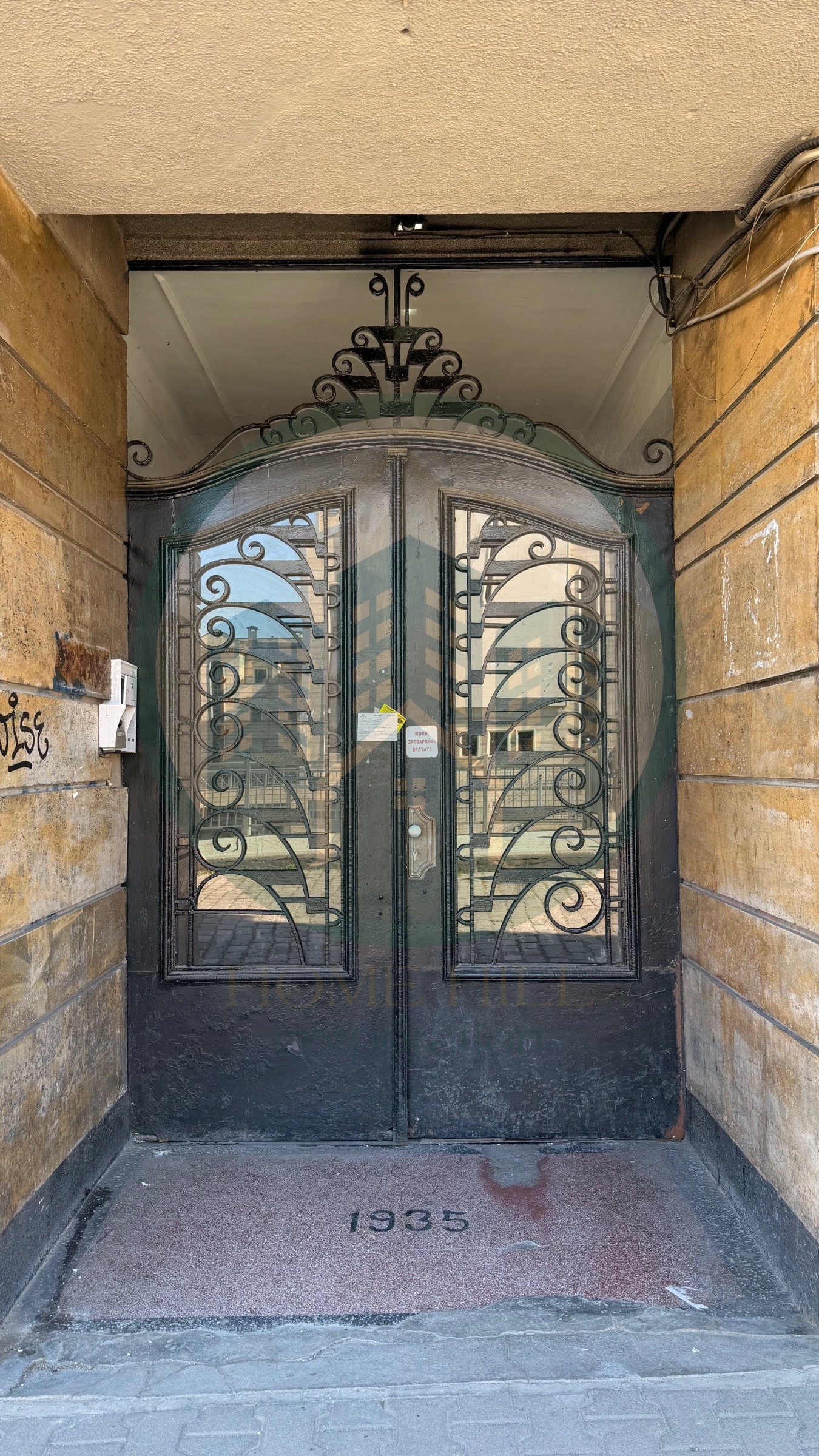Имотът се намира на 5-ти етаж от 7-етажна тухлена сграда с асансьор, построена през 1935 г. в стилното и изключително здраво строителство, познато като царска тухла .