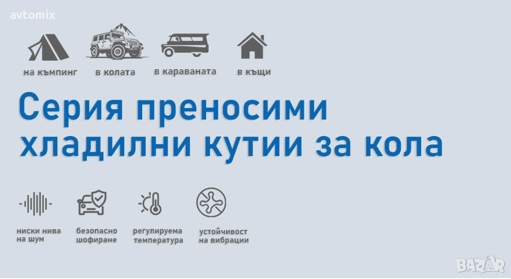 - Приложение: хотел, кола, на открито, гараж, кемпер, търговия, домакинство;