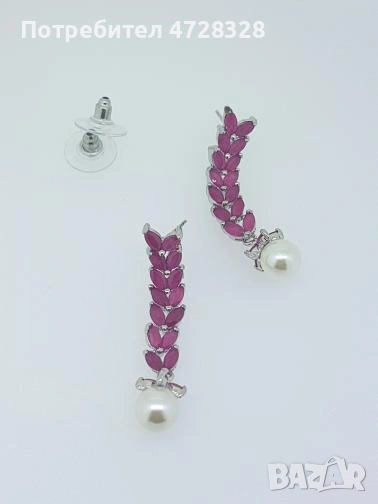 Цирконови висящи обеци с перла на винт - Цвят - лала/циклама.Прекрасен подаък за вас или за вашите близки.