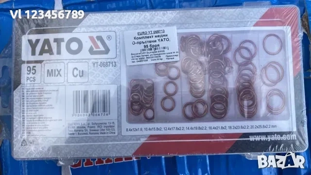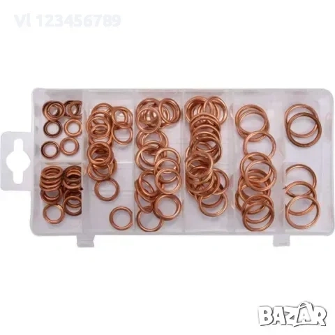 Комплект медни О-пръстени,- поставени в удобна пластмасова кутия с отделения.