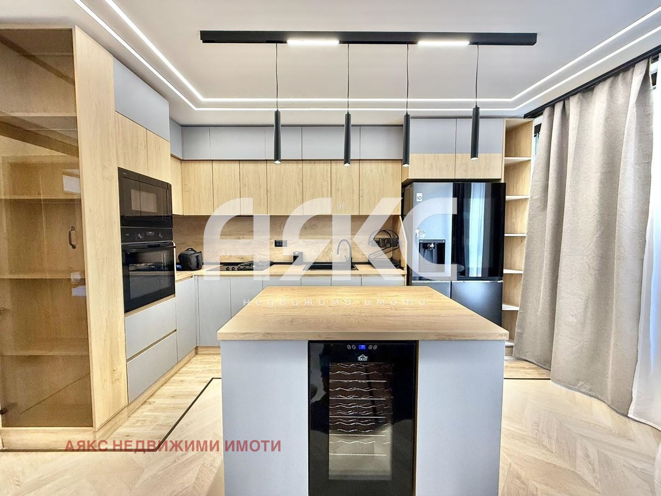 Кухнята е оборудвана с електроуреди от най-висок клас, включително съдомиялна, пералня със сушилня, а за максимален комфорт през всички сезони са монтирани три климатика по един във всяка стая.
