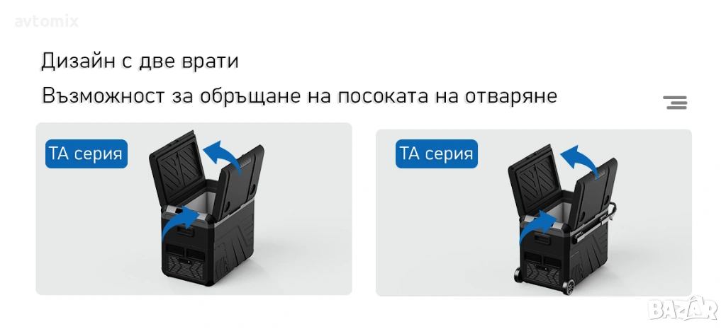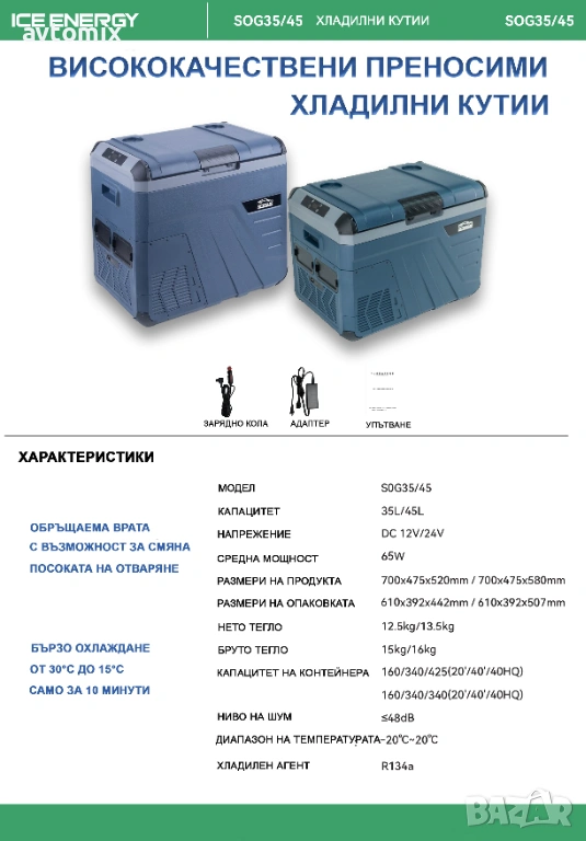 Фризер с двойна употреба: електрически компресорен хладилник и преносим къмпинг хладилник за автомобил. Подходящ за кемпер, къмпинг, риболов, барбекю и събития на открито. Универсален, с множество различни приложения за съхранение на храна и незаменимо удобство при продължително пътуване.