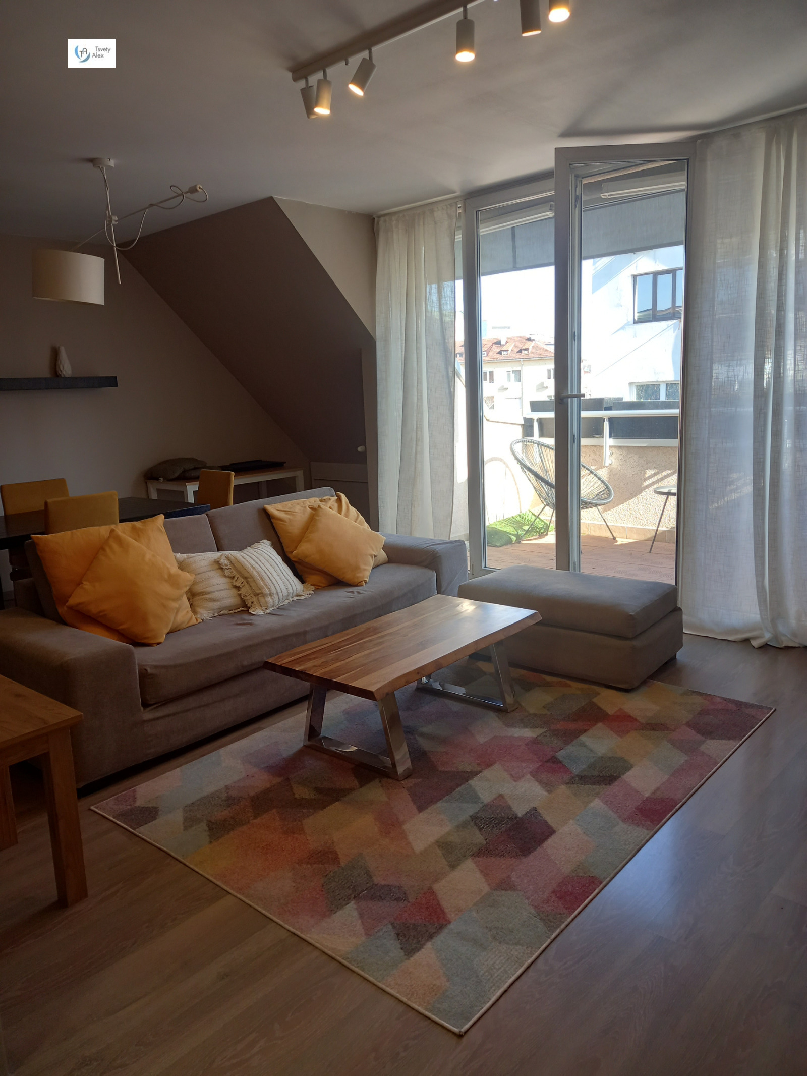 Отдаваме под наем артистичен двустаен апартамент, находящ се в нова кооперация на ул. 'Удово', в непосредствена близост до НДК.