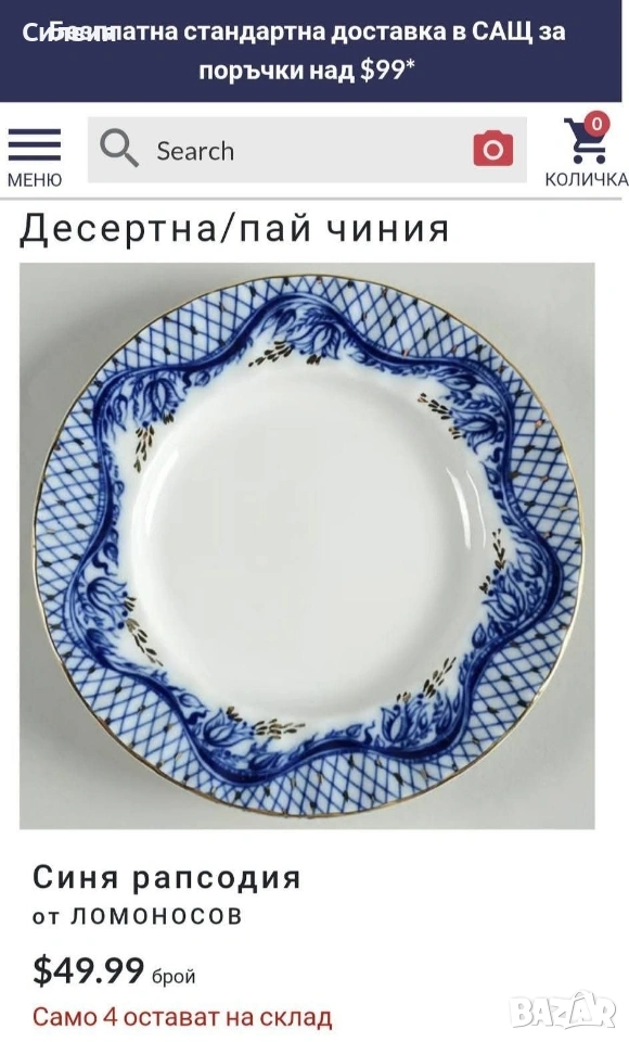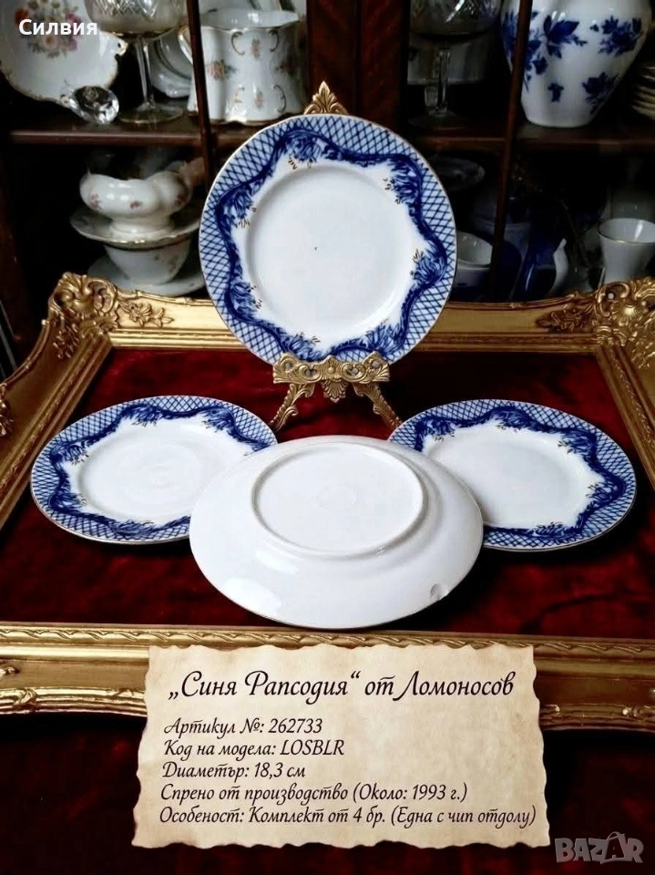 Комплект от 4 десертни чинии, вече спряна от производство колекция „Синя Рапсодия“ (Blue Rhapsody).