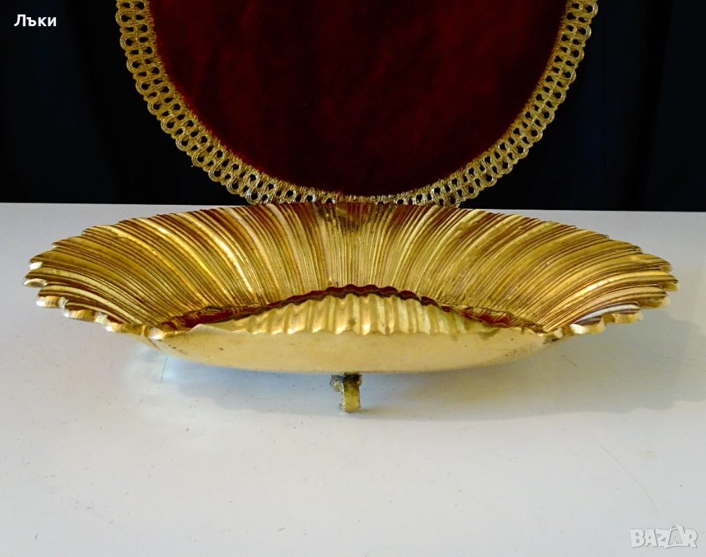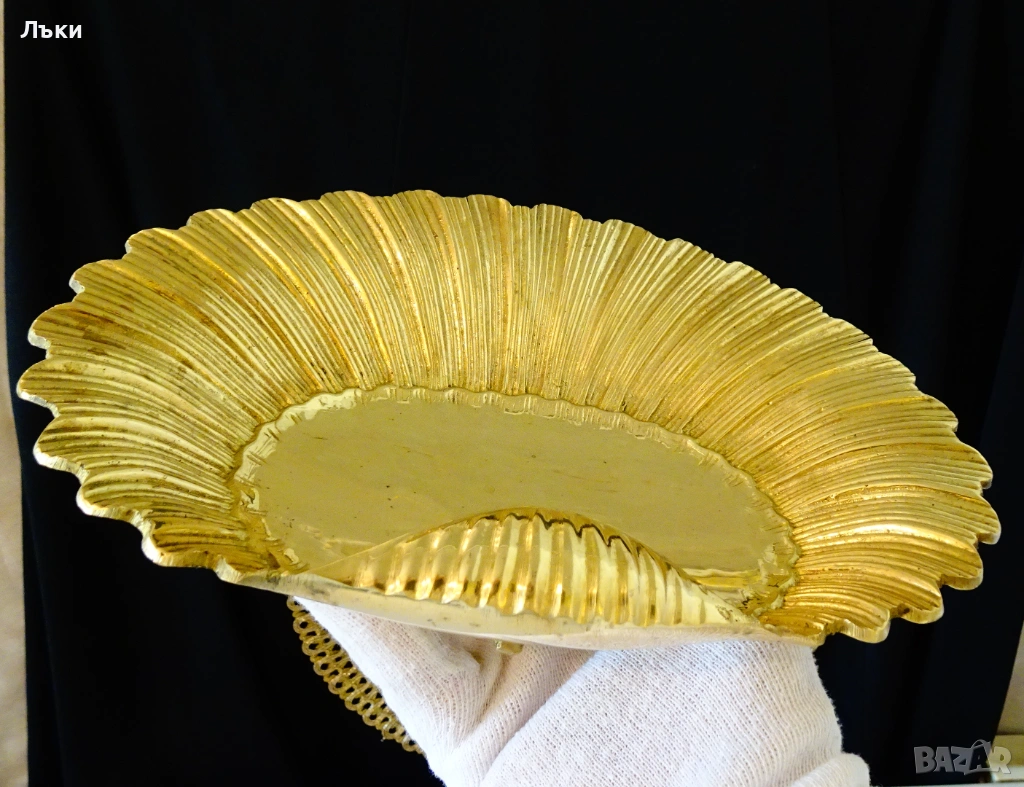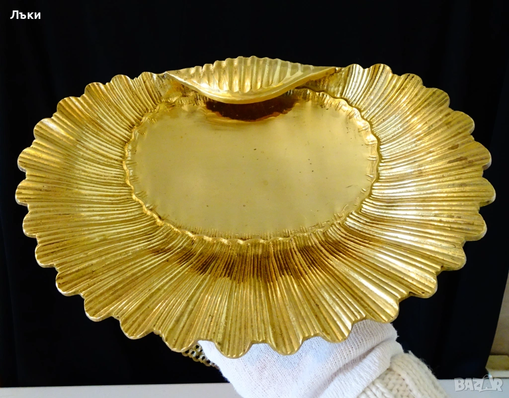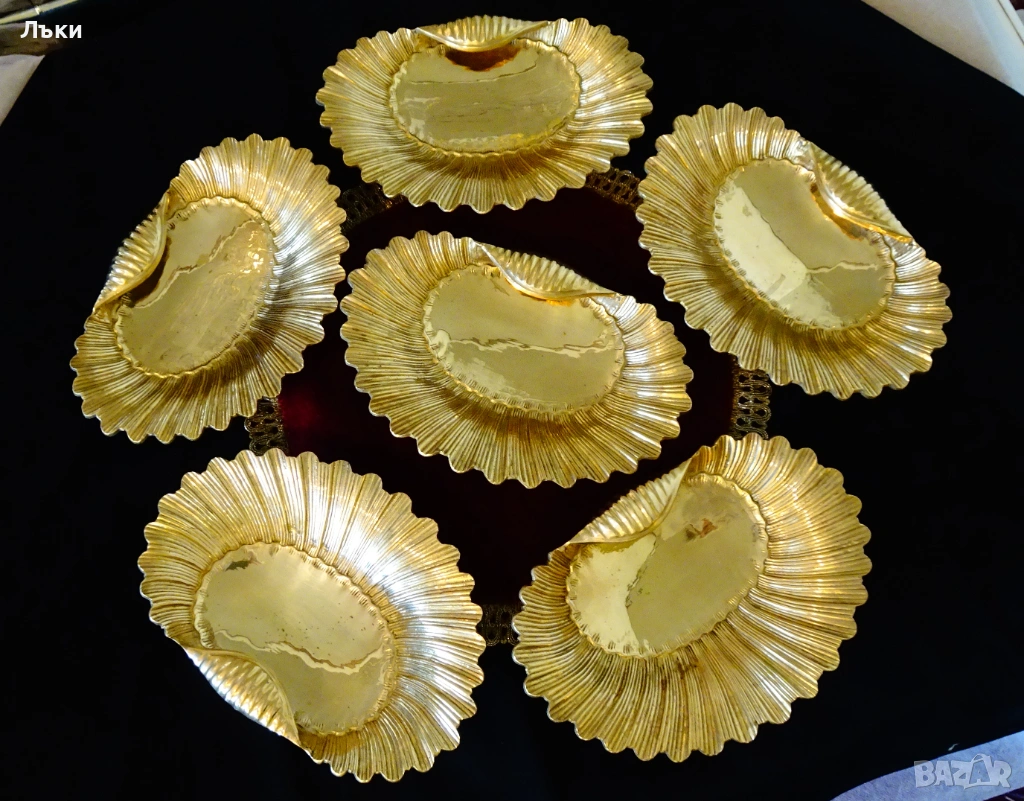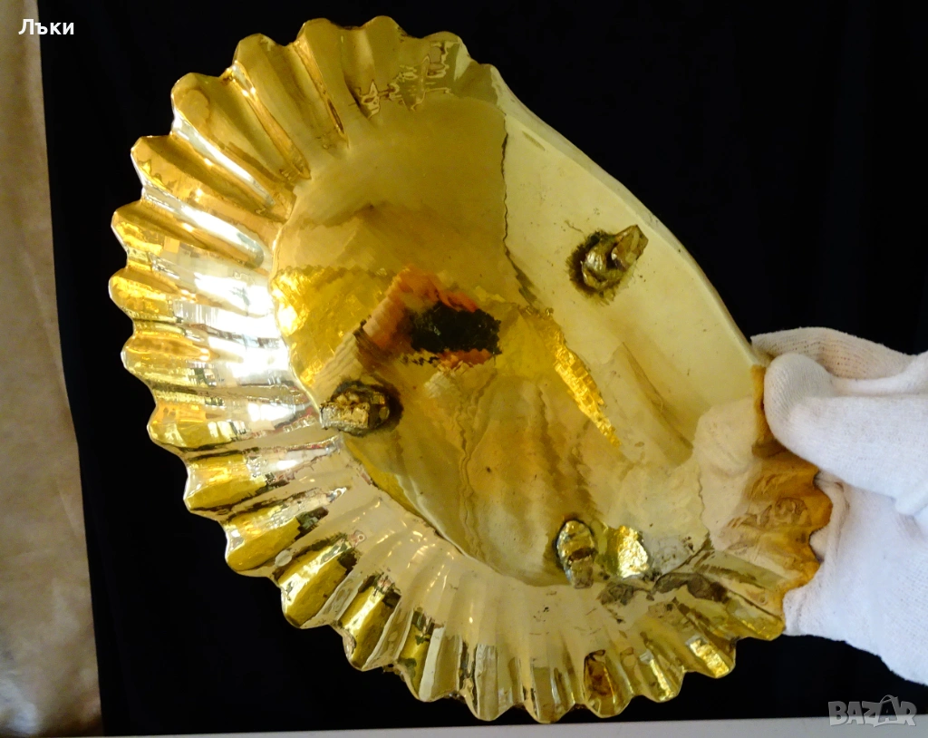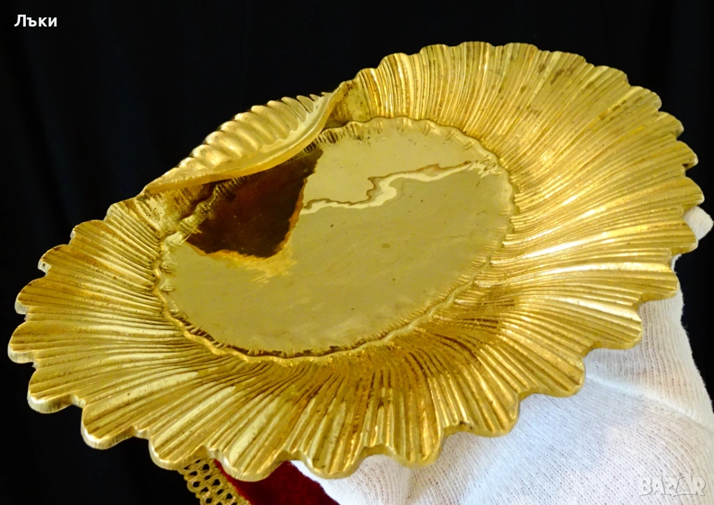 сервиране на стриди,ръчно отлят от свръх масивен бронз,дебело позлатен с 24