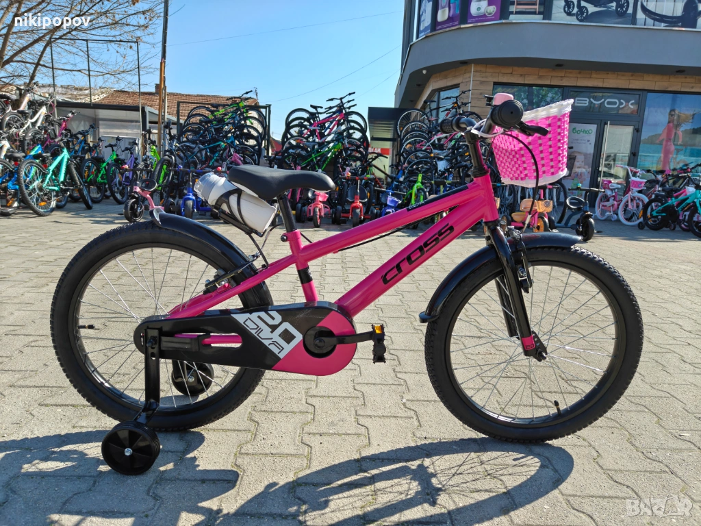 *Детският велосипед на Cross Bikes е един прекрасен избор за децата между 6 и 8-годишна възраст и височина от 120 до 140см. Возилото е снабдено с помощни колела, посредством които детето ще усъвършенства умението си да балансира на две гуми неусетно. Рамката е стоманена. Разполага с предна и задна V-brake спирачка, пластмасови калници и предпазител на веригата.