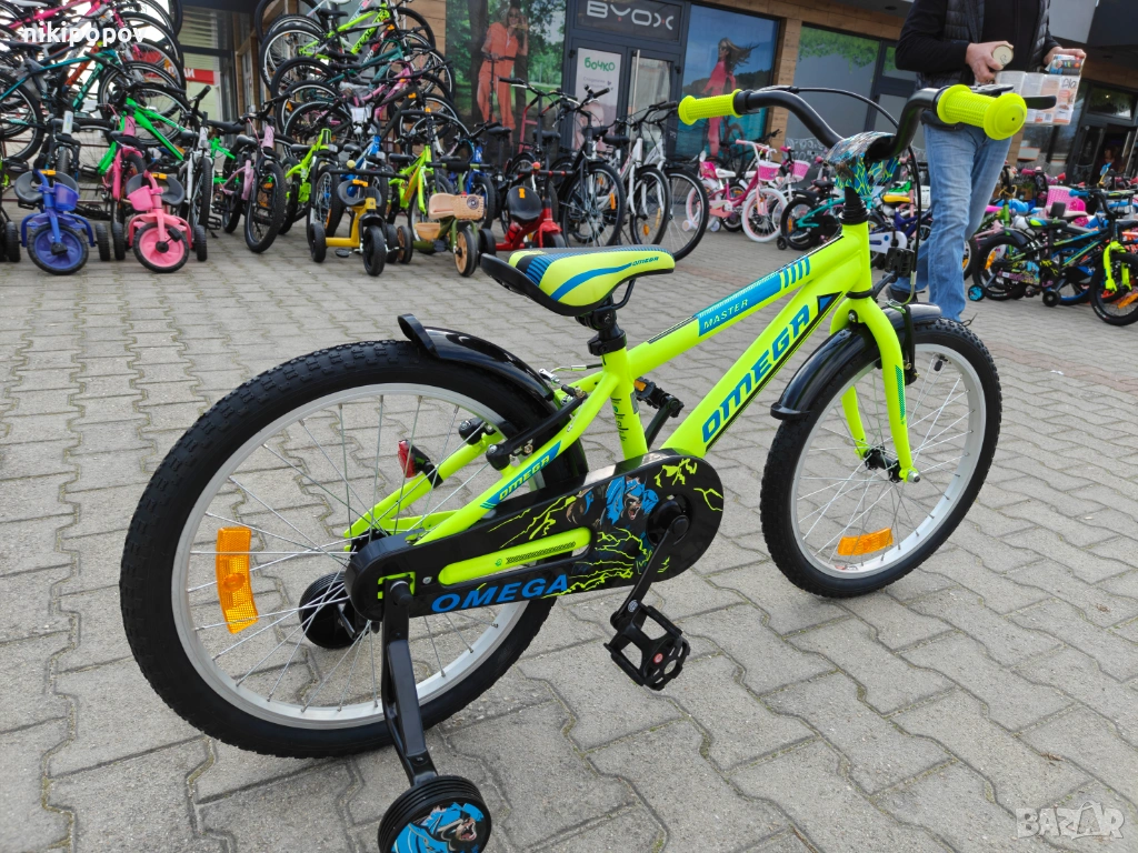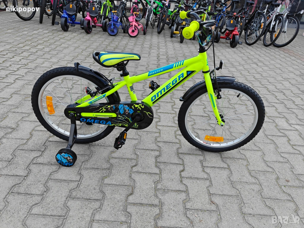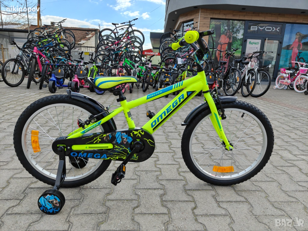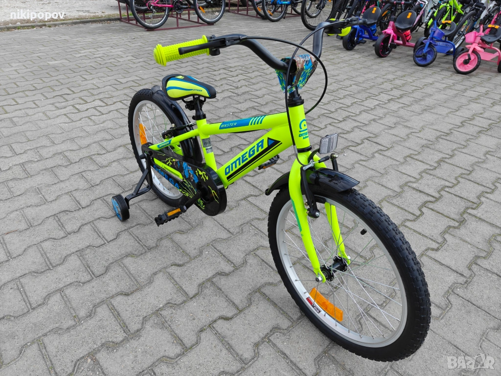 *Детският велосипед на Omega Bikes е един прекрасен избор за децата между 6 и 8-годишна възраст и височина от 120 до 140см. Возилото е снабдено с помощни колела, посредством които детето ще усъвършенства умението си да балансира на две гуми неусетно. Рамката е стоманена. Разполага с предна и задна V-brake спирачка, пластмасови калници и предпазител на веригата.