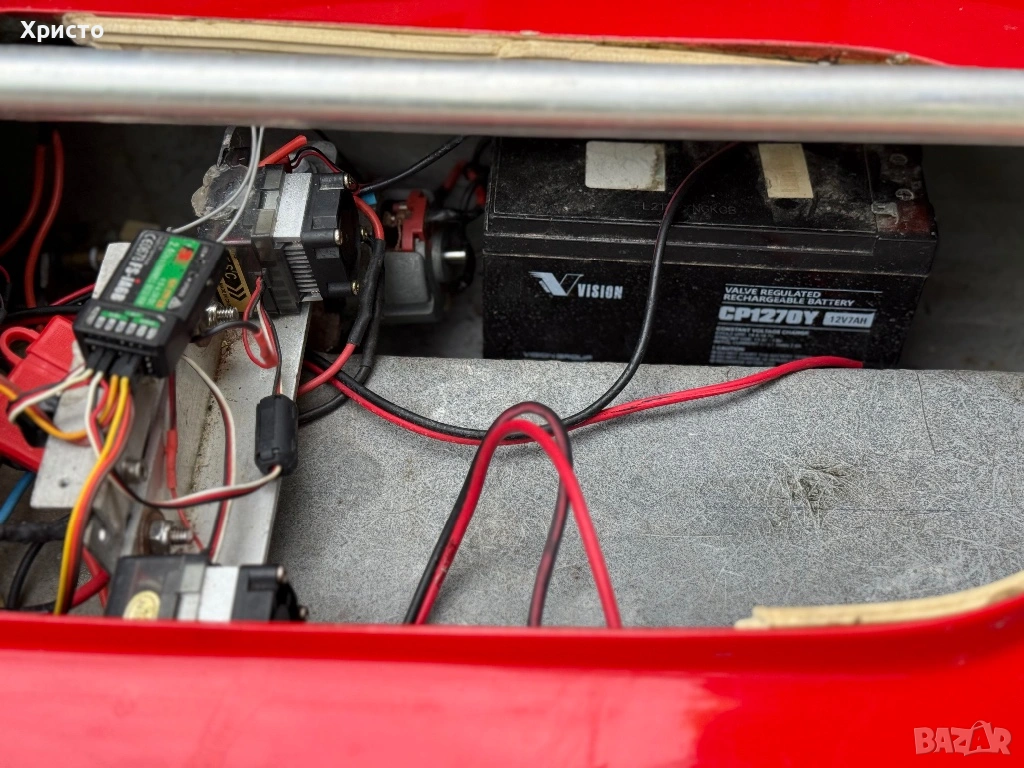 Лодката работи с 12V акумулатор (Vision 7Ah), който осигурява приблизително 1 – 3 часа работа в зависимост от натоварването. Оборудвана е с LED сигнални светлини и индикатор за напрежението на батерията. Без бартери!!!