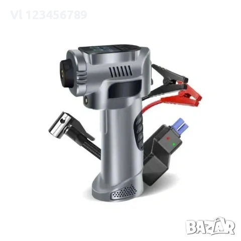 Преносим въздушен компресор, цифров, LED, 8000mAh, 4 дюзи, 20.5x11x7cm, сив