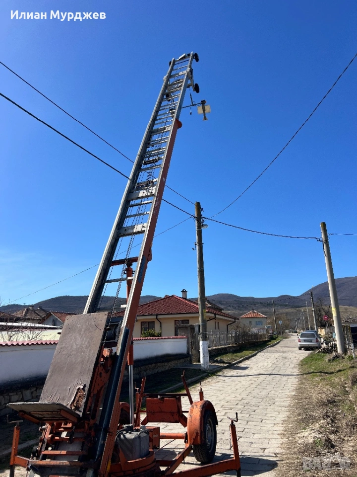 Работна височина до 22метра, регулируем наклон на последната стълба; дължина при придвижване 9,4 метра.