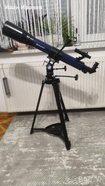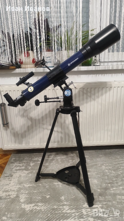 Продавам телескоп Bresser, подходящ за начинаещи и любители на астрономията. Идеален за наблюдение на Луната, планетите и звездното небе, както и за наземни наблюдения.