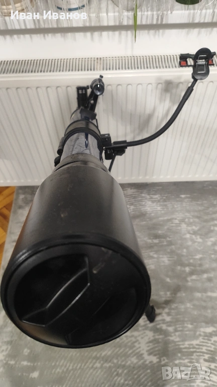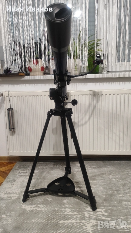 Телескопът е в много добро състояние, използван е малко и се предлага в комплект със стойка и аксесоари, готов за употреба.