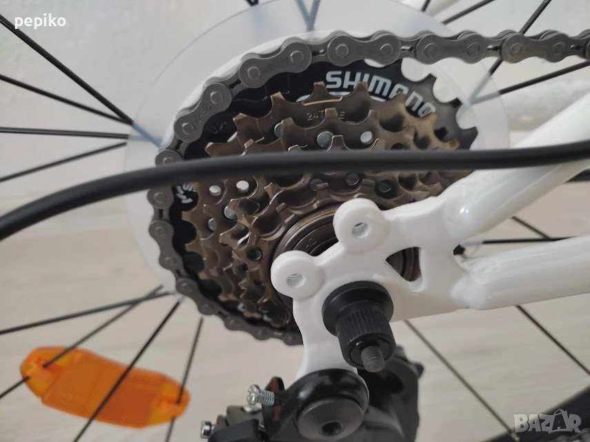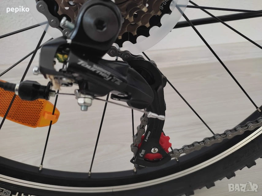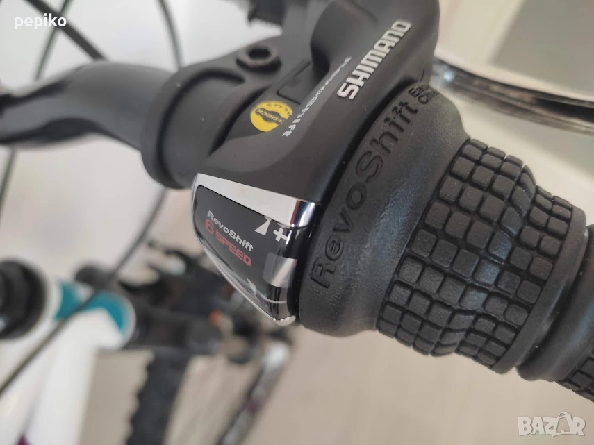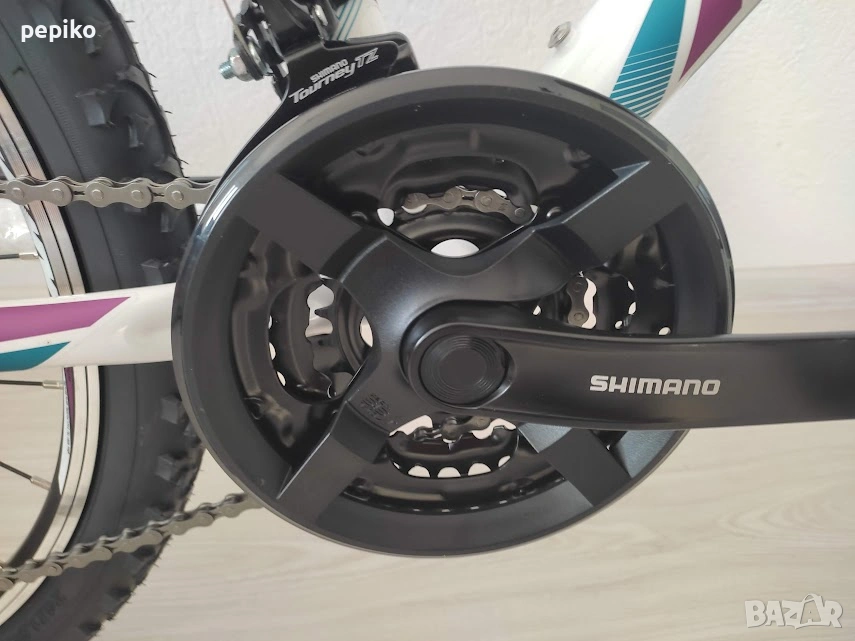 НОВ юношески велосипед CALIPSO 24 цола,олекотена стоманена рамка STELL 24 цола с 18 скорости,фиксирани превключватели SHIMANO RS-SL TOURNEY 3 х 6,средно движение SHIMANO касета,алуминиеви курбели SHIMANO,пластмасови педали,преден отклонител SHIMANO IOURNEY,заден отклонител SHIMANO TZ TOURNEY,задни венци SHIMANO MF-TZ500,предна и задна алуминиеви главини с авомати за бърз монтаж и демонаж,никилирано колче на седалката,спортна седалка на релси,алуминиево кормило,метална степенка,алуминиеви вибрейк спирачки,преден амортисьор ZOOM,алуминиеви двойностенни усилени капли,никилирани спици,гуми със спортен грайфер КЕНДА 24 х 1,75 размер на рамката 28 х 48 см.тегло 13 кг. ГМ170ЕО Повече инфо на