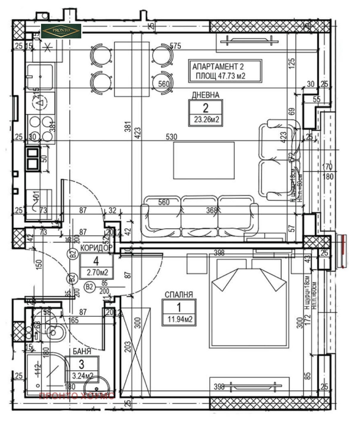 В същата сграда се предлагат и други двустайни и тристайни апартаменти.