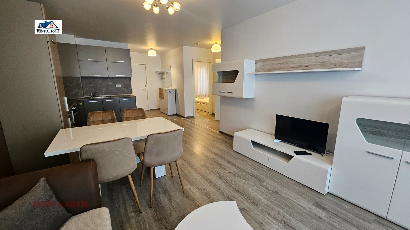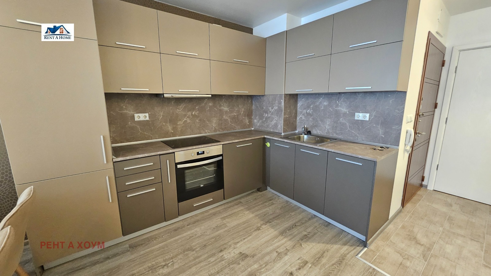 апартамента: хол с кухненски бокс и трапезария, две спални, баня с тоалетна, сервизно помещение и тераса. Отоплението е на газ, има и климатик. Към жилището се отдава и гараж на цена от 150 евро . За повече информация и огледи ни потърсете на посочените телефони. Оферата е за ч.л.