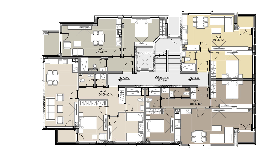 Проектирани с внимание към всеки детайл, апартаментите в сградата са двустайни и тристайни, с функционални и удобни разпределения, подходящи както за живеене, така и за инвестиция. Отоплението е предвидено на ток модерен и икономичен избор, който дава възможност за индивидуален контрол на потреблението.