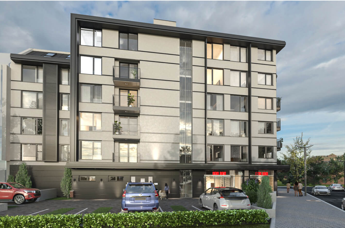 Тристайни апартаменти в новострояща се пететажна жилищна сграда с магазини и подземен паркинг на етап довършителни дейности. Възможност за покупка на външни паркоместа на нивото на партера и подземни паркоместа. Осигурен е безпрепятствен достъп на хора с увреждания до асансьорите на сградата, които имат спирки на всички нива. Стълбищната клетка е отделена от етажните коридори пред апартаментите. Доказан инвеститор с опит в изграждането на жилищни сгради. Привлекателна сграда с модерно излъчване и изчистени линии. 7-камерна дограма с немски профил Rehau, троен стъклопакет, Ка + Б + 4 Сезона осигурява високо ниво на шумо и топлоизолация. Нисък процент общи части. Висококачествена топлоизолационна система. Луксозно завършени общи части и високотехнологичен испански асансьор ORONA. Видеонаблюдение, контрол на достъпа, видеодомофонна система. Богато и стилно озеленяване.