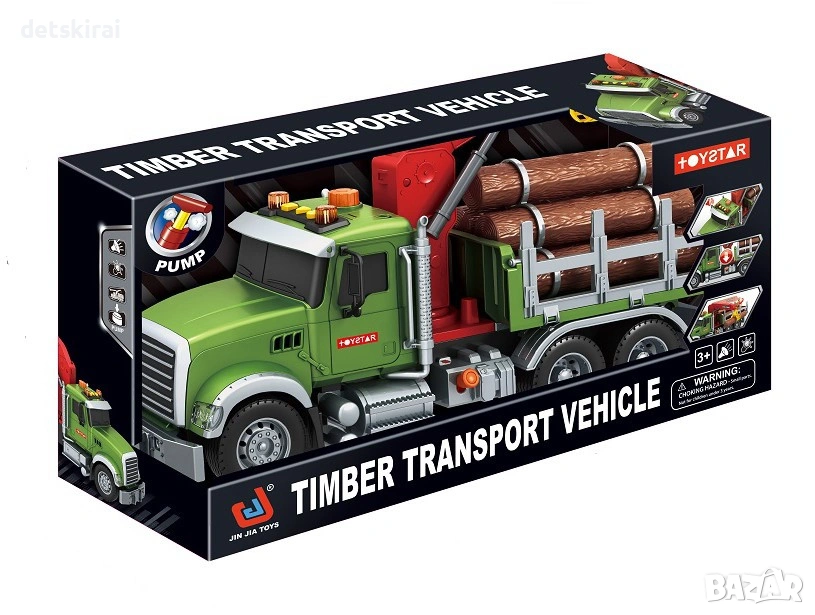 Представяме ви детски камион за дърва с пневматична щипка – впечатляваща играчка, създадена за малките любители на строителни и специализирани машини. Този реалистичен камион е предназначен за товарене и транспортиране на дървени трупи, като предлага разнообразни функции, които правят играта още по-интересна и динамична.
