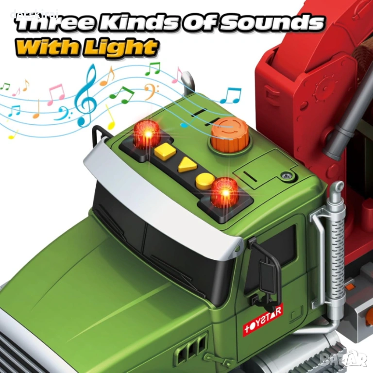 Камионът разполага и със светлинни и звукови ефекти, активиращи се чрез специални бутони. Те създават допълнително усещане за истинска работна машина и правят играта още по-вълнуваща.
