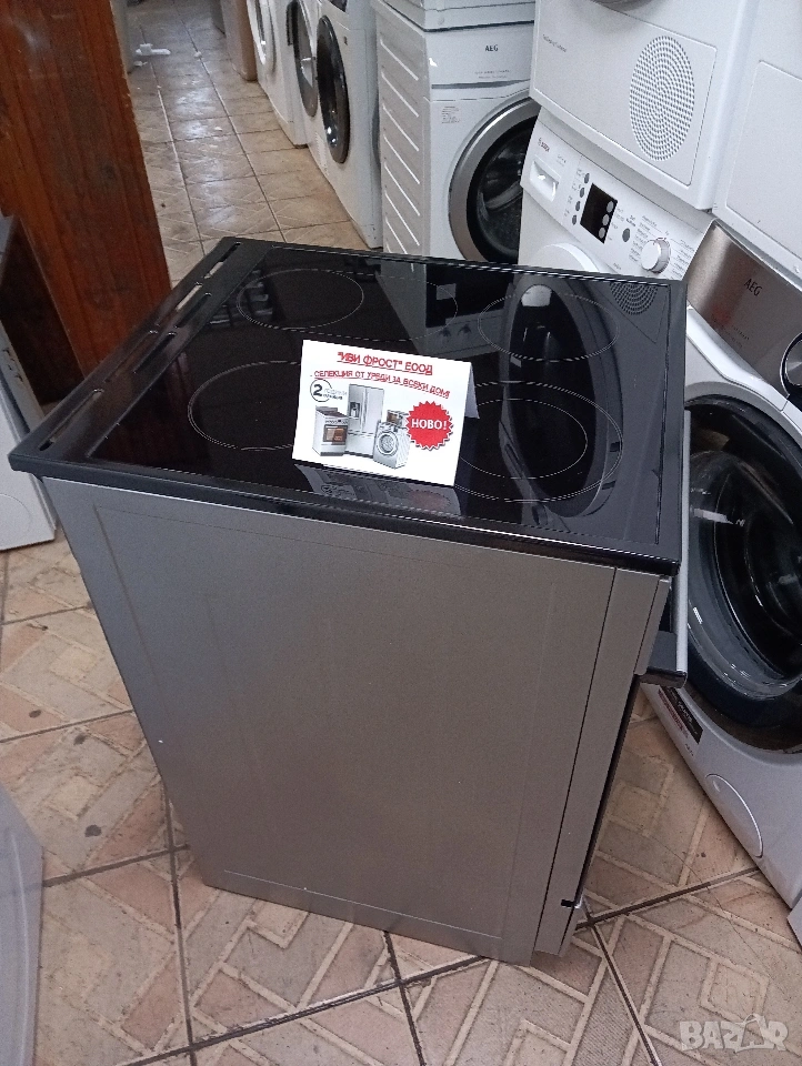 Страхотна чисто нова тясна 50см свободно стояща печка с керамичен плот!Клас на енергийна ефективност: А