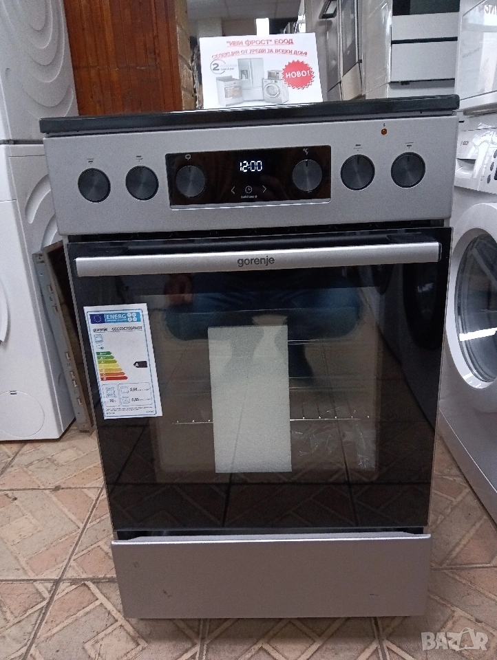 Чисто нова тясна 50см иноксова свободно стояща печка с керамичен плот Gorenje с 2 години Гаранция!