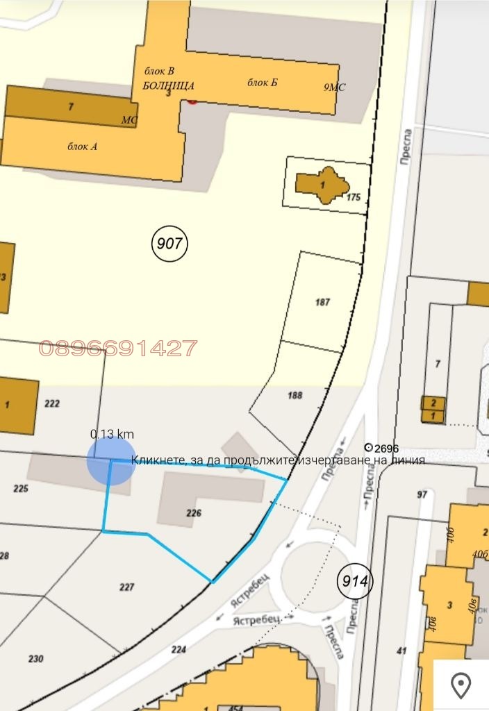 Забележка: В непосредствена близост до имота има изградена инфраструктура и обекти от обществено значение (Болница,аптеки, търговски обекти), което го прави изключително комуникативен.