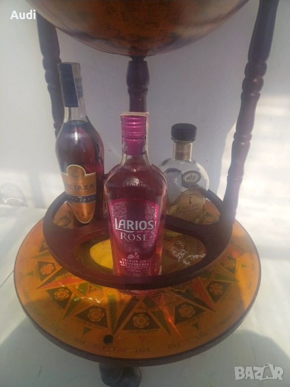 Глобус барът “Worlds” е подвижен глобус с място за бутилки в долната си част и място за бутилки и чаши в горната.