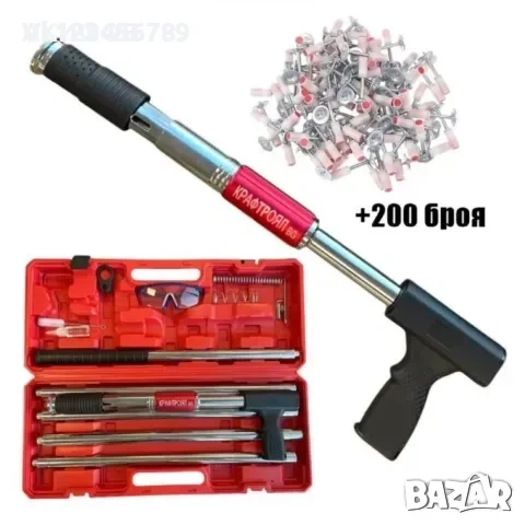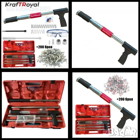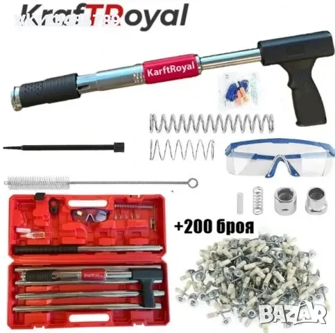 Професионален пистолет за пирони KraftRoyal с очила, ръкавици и 200 бр. пирони