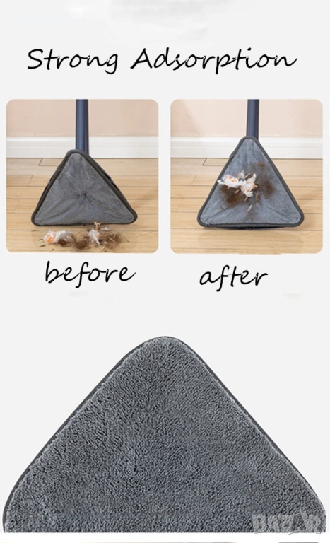 Премиум материал - Мопът е снабден с микрофибърна кърпа /подложка/, която може бързо да абсорбира вода в рамките на 5 секунди, в същото време здраво задържайки праха.