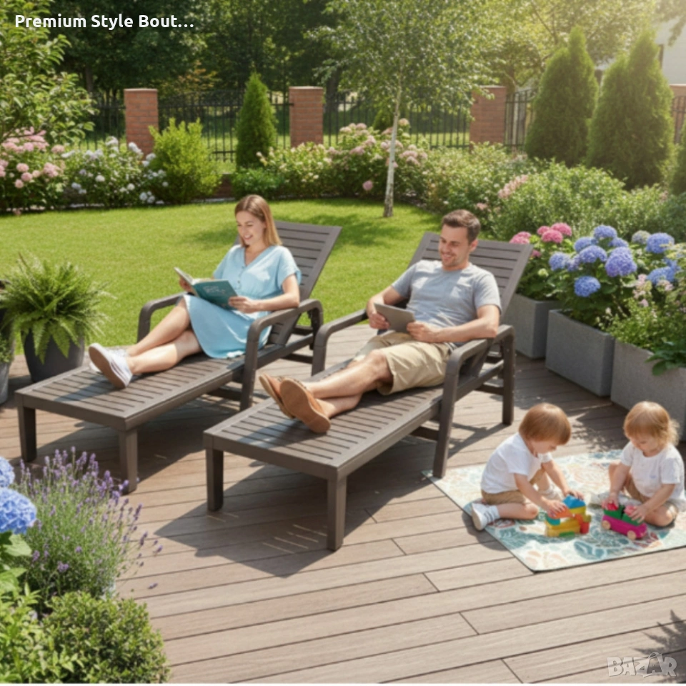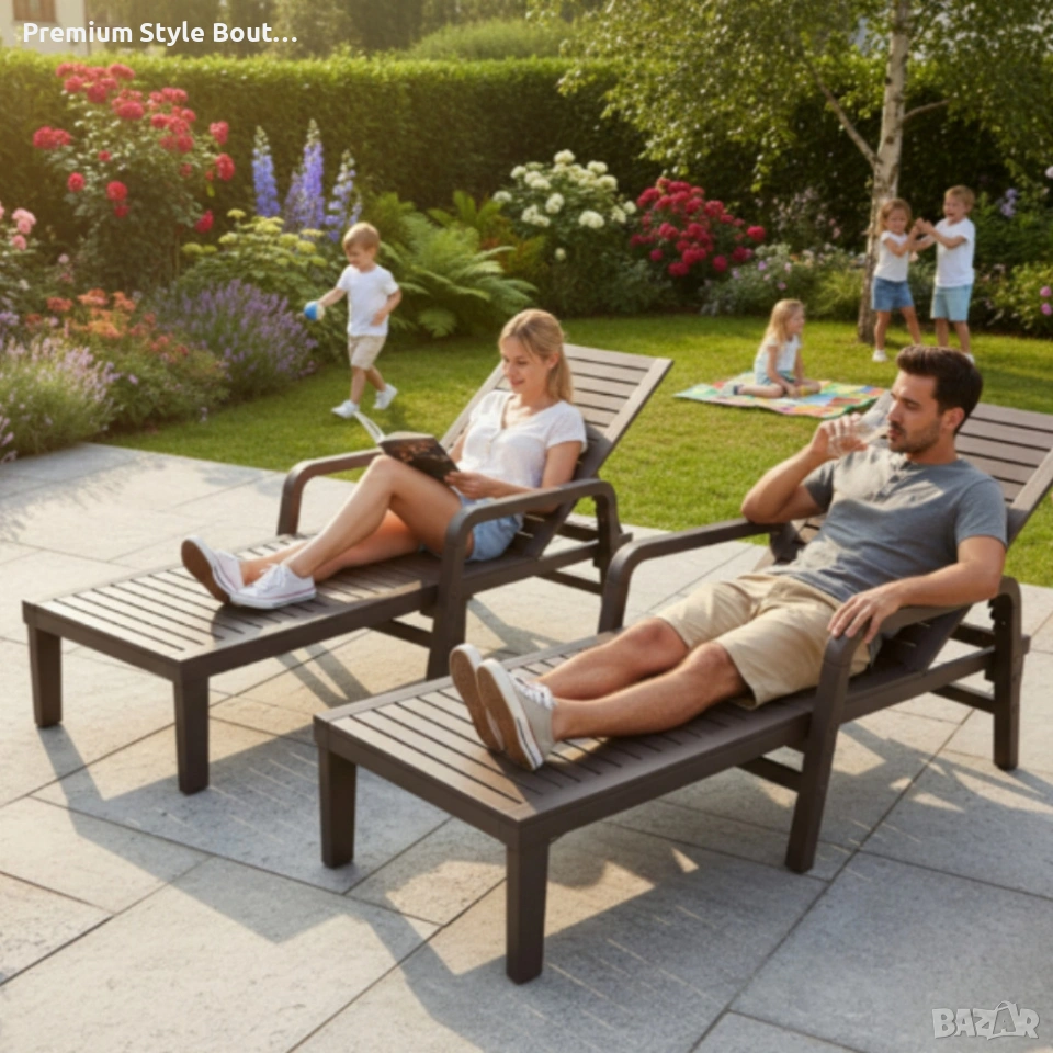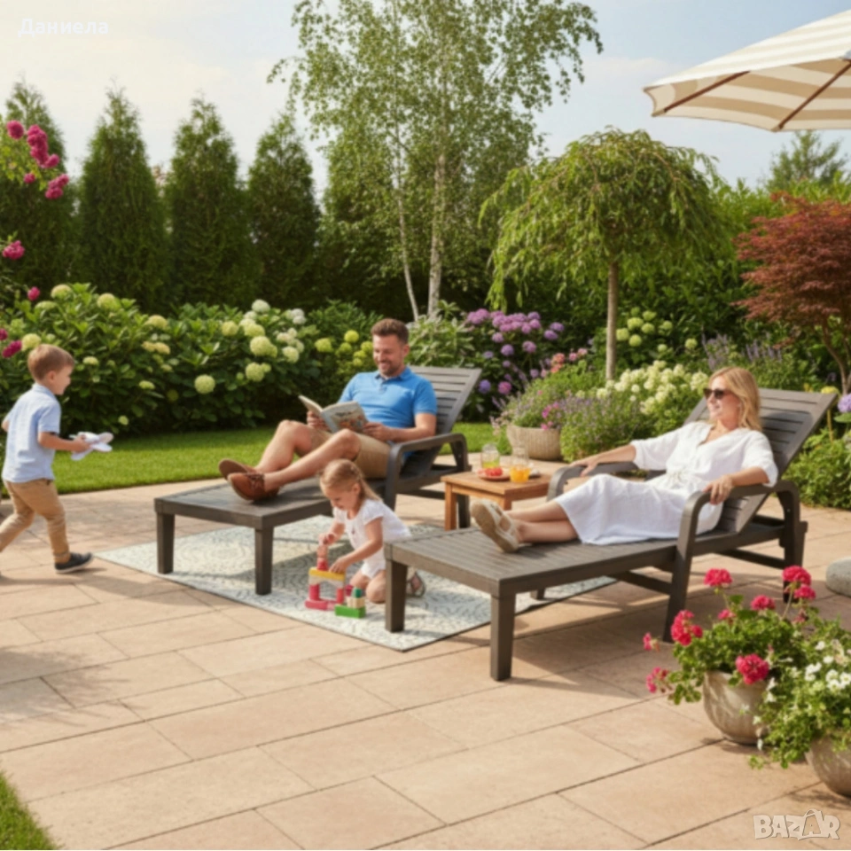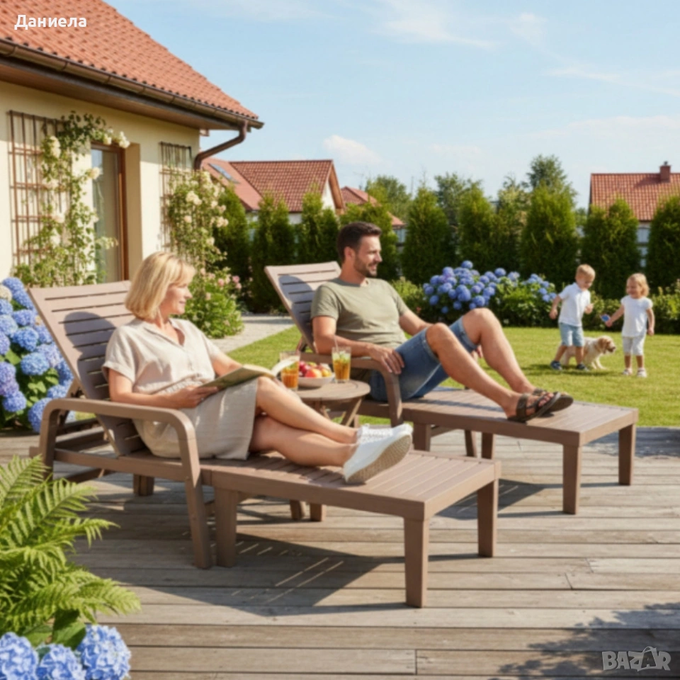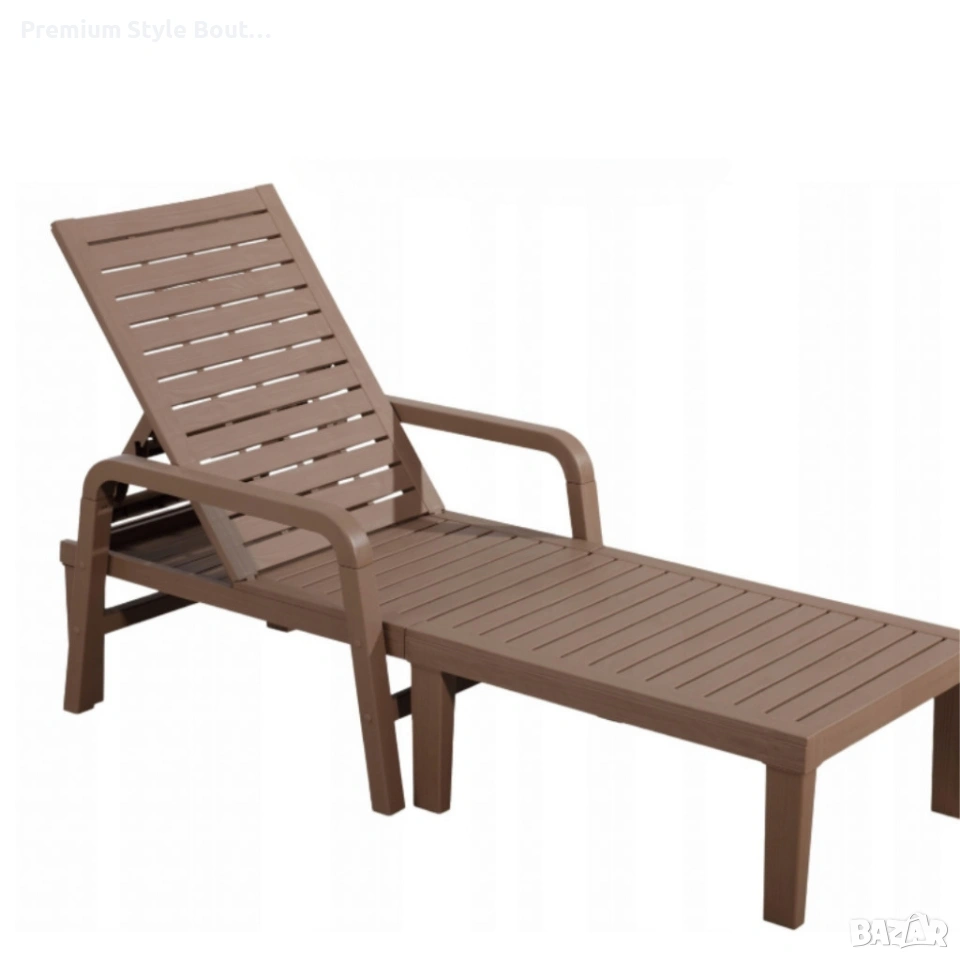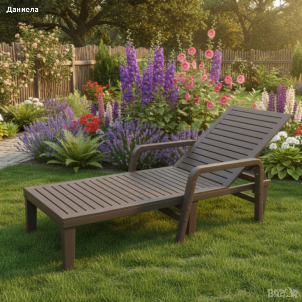 Технически характеристики на Градински шезлонг - комфорт, издръжливост и стил Моделът е оптимален по отношение на размери и материали, съобразен с ежедневните нужди за градинска мебел: Размери: 192 x 66 x 33 см Материал: Пластмаса (полипропилен) Цвят: Светлокафяв (наличен и в тъмнокафяв вариант) Устойчивост: Водоустойчив и защитен срещу UV лъчи Височина на подлакътниците: 45 см Приложение: Градина, тераса, балкон, двор