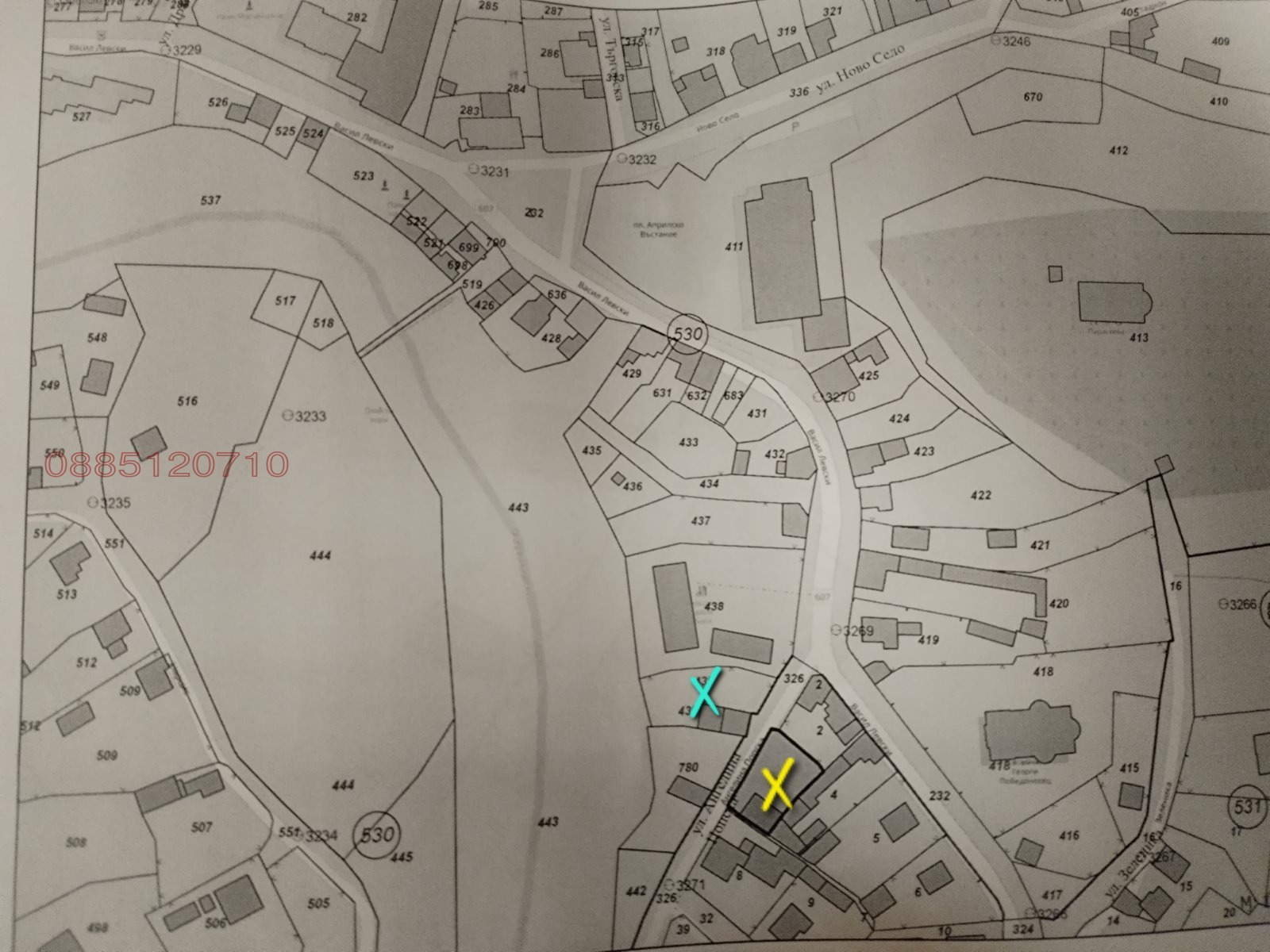 2. Самостоятелен двор около 400 кв.м. (жълтия кръст на снимките от кадастъра)
