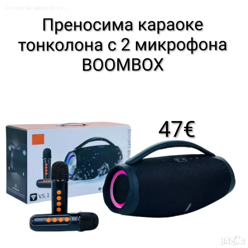 Преносима караоке тонколона с 2 микрофона BOOMBOX → Обява 53833614