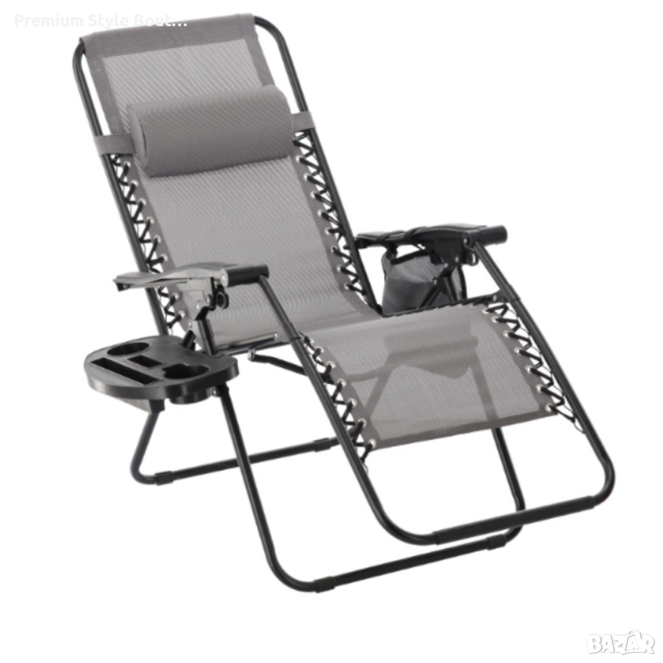 Сгъваем градински шезлонг със стойка, джоб и възглавница - мобилна зона за комфорт
