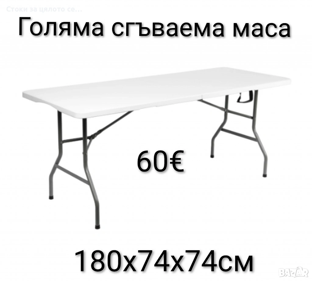 Голяма сгъваема маса 180х74х74см → Обява 53833852