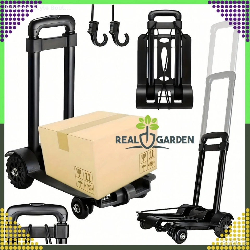 Сгъваема транспортна количка - С телескопична дръжка, товароносимост 40 кг, 1.2 кг + 2 Бънджи