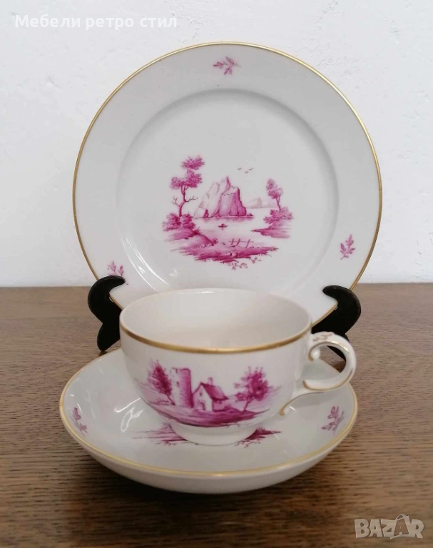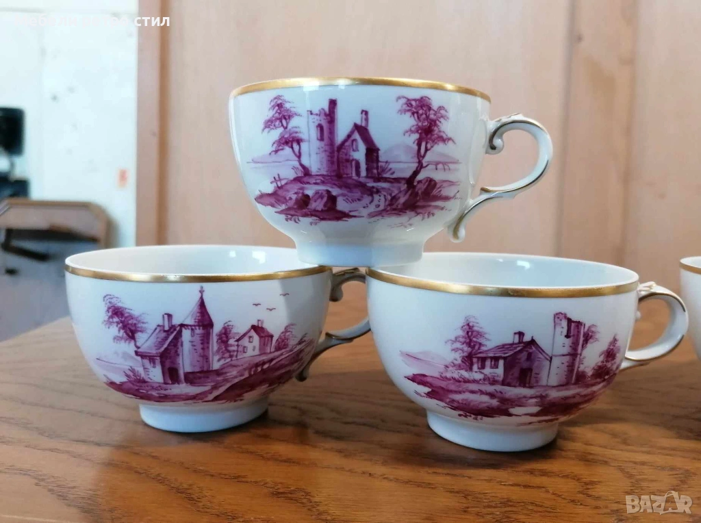Ръчно рисуван порцеланов сервиз за кафе Purpur Camaieu. → Обява 53834361