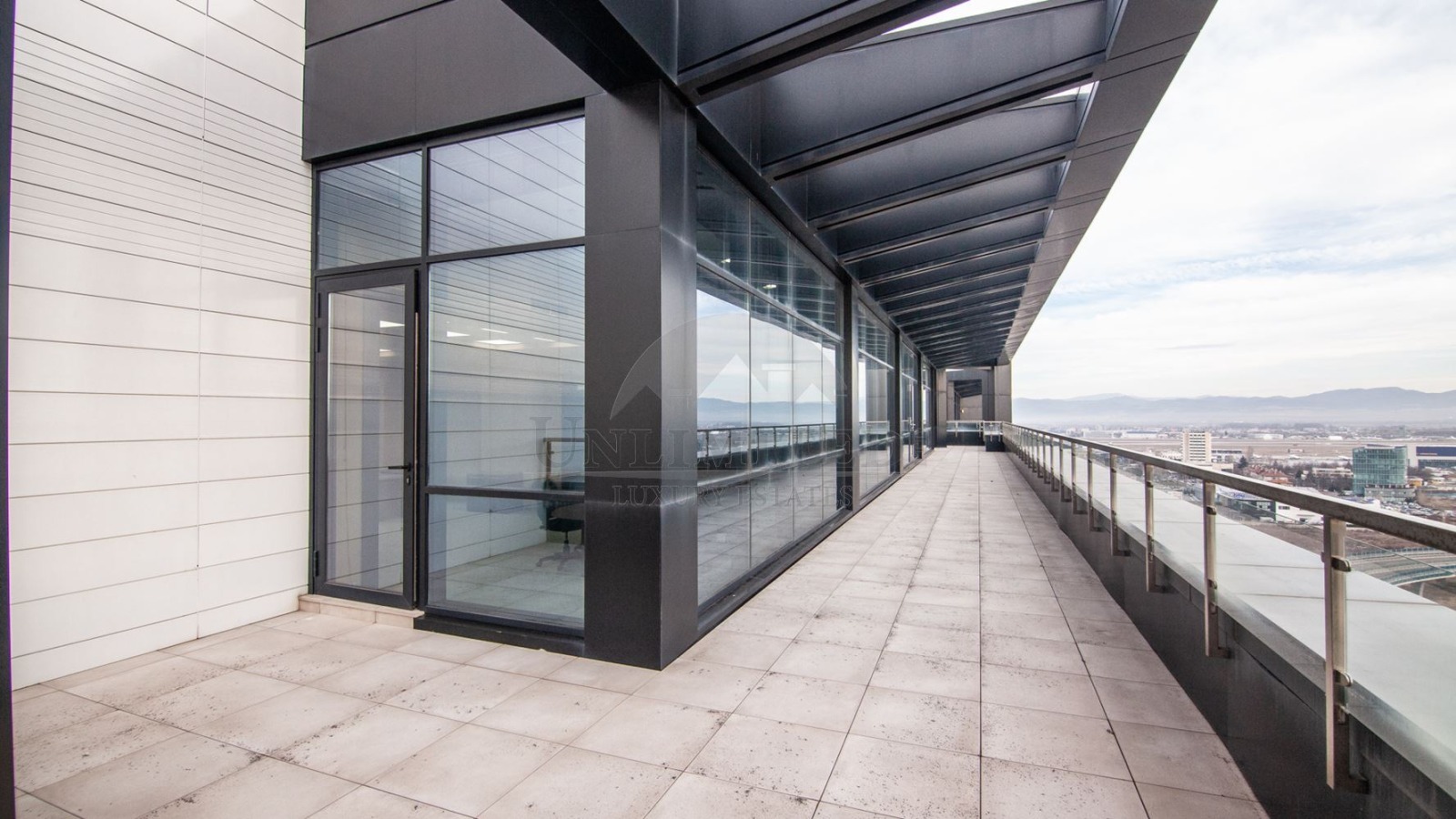 Ънлимитед представя обзаведен офис на последен етаж, със стратегическа локация и 260 кв.м тераса предоставяща невероятни гледки.Сградата е разположена на 15 етажа. На разположение са закрити и открити паркоместа